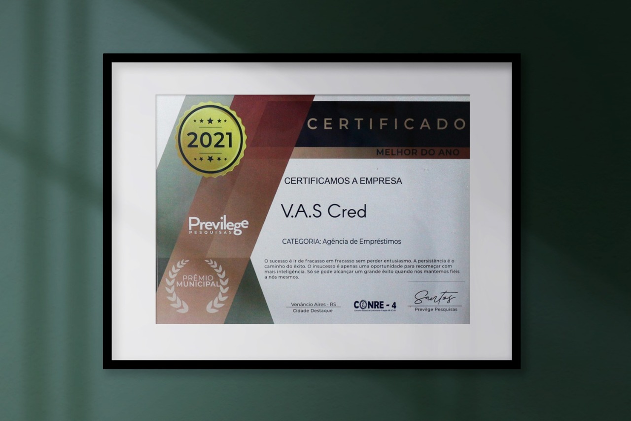 Há 39 Anos trabalhando com Bancos como Unibanco, Santander e Panamericano. E a 10 Anos é o proprietário da V.A.S Cred.