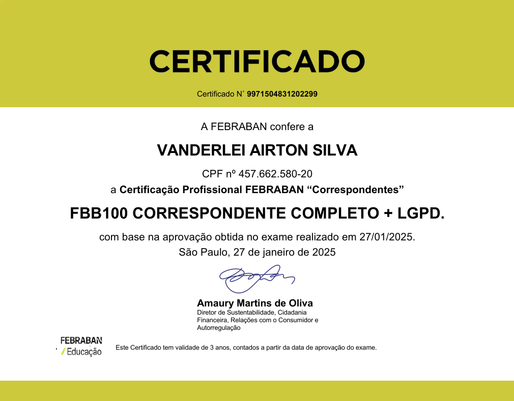É credenciado a trabalhar neste ramo pela Federação Brasileira de Bancos (Febraban)