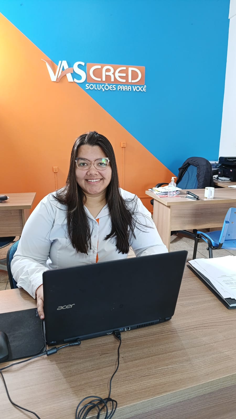 Angela Luiza da Silva Santos Barden, atendente na V.A.S Cred, traz entusiasmo e compromisso em seu novo papel. Em treinamento para excelência no atendimento financeiro, conta com a expertise de uma equipe certificada pela Febraban.